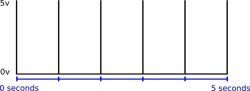 This is a graph of what the signal from the sketch above would look like on an oscilloscope: